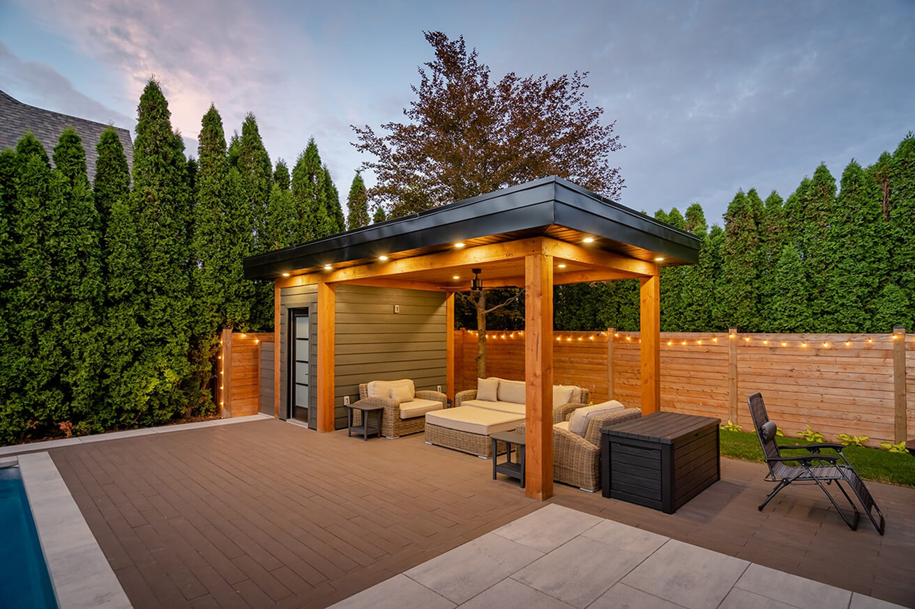This category includes cabanas, pool houses, change rooms, and multi-purpose backyard buildings. These structures provide shelter, storage, and functional space while maintaining architectural consistency with the home.